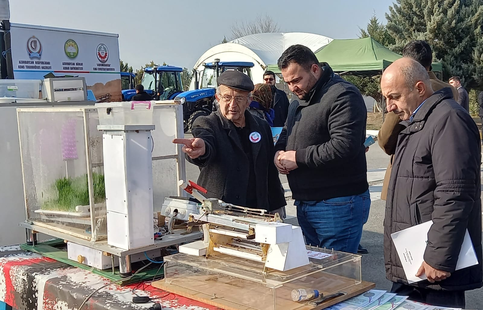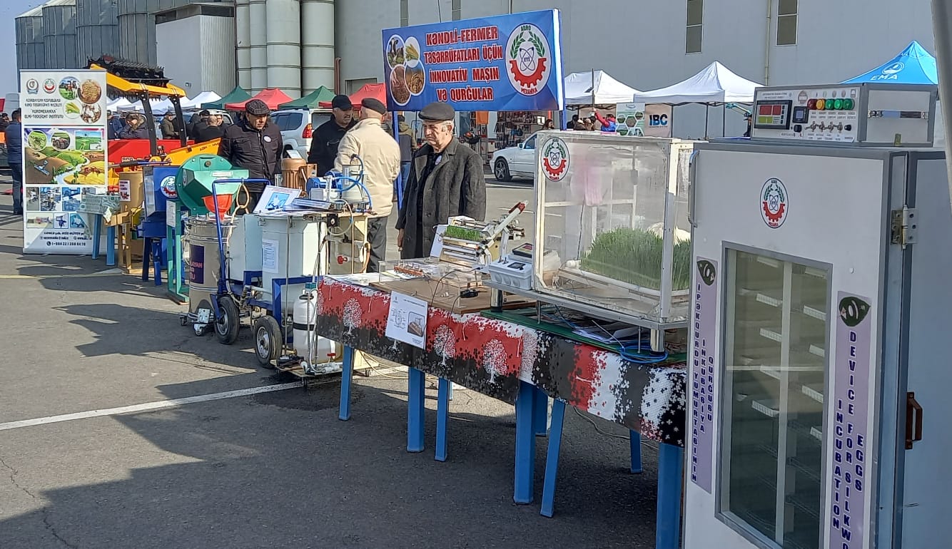 İnstitutun direktoru Kamil Fətəliyev institutda kəndli-fermer təsərrüfatları üçün ixtira səviyyəsində hazırlanaraq satışa çıxarılmış müxtəlif kiçik qabaritli maşınlarla yanaşı, ilkin təcrübi nümunələri hazırlanmış innovativ qurğular: “Buzovların yemləndirilməsi üçün üzlü südəvəzedici hazırlayan qurğu”, “İpəkqurdu yumurtasının inkubasiya qurğusu”, “Yüksək zülal tərkibli yem (soya südü) hazırlayan qurğu”, “Universal yemxırdalayan qurğu”, “Yaşıl yem yetişdirmək üçün qurğu”, “Ozonator qurğusu”, “Modul tipli istixananın işlək imitasiya modeli”, “Dərman preparatları, ozonlaşdırılmış su çiləyicili məsafədən idarə olunan qoşqulu traktor modeli” və institutda son illər alınmış patentlər haqqında tədbir iştirakçılarına ətraflı məlumat vermişdir.